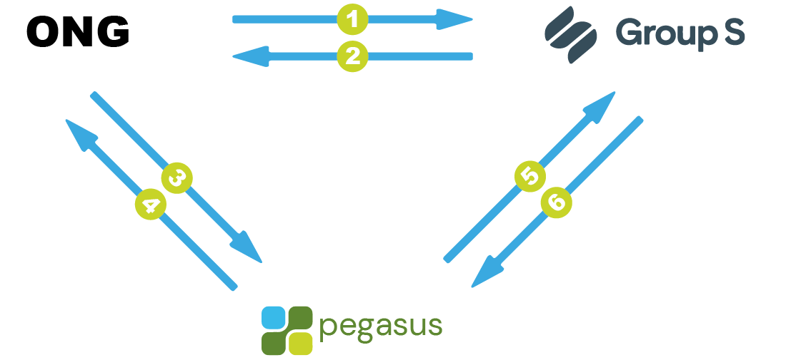 Voici comment fonctionne cette collaboration, avec les responsabilités des ONG, de Pegasus et de Group S :